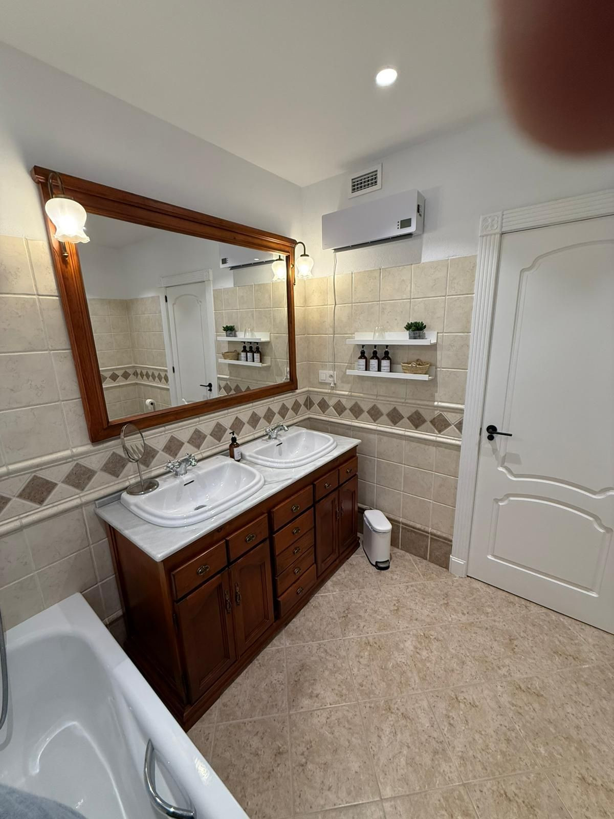 The villa features four bedrooms and three bathrooms. Two bedrooms and one bathroom are located on the ground floor, while the upper level hosts two elegant suites, each with a private dressing room and en-suite bathroom, offering maximum comfort and privacy.