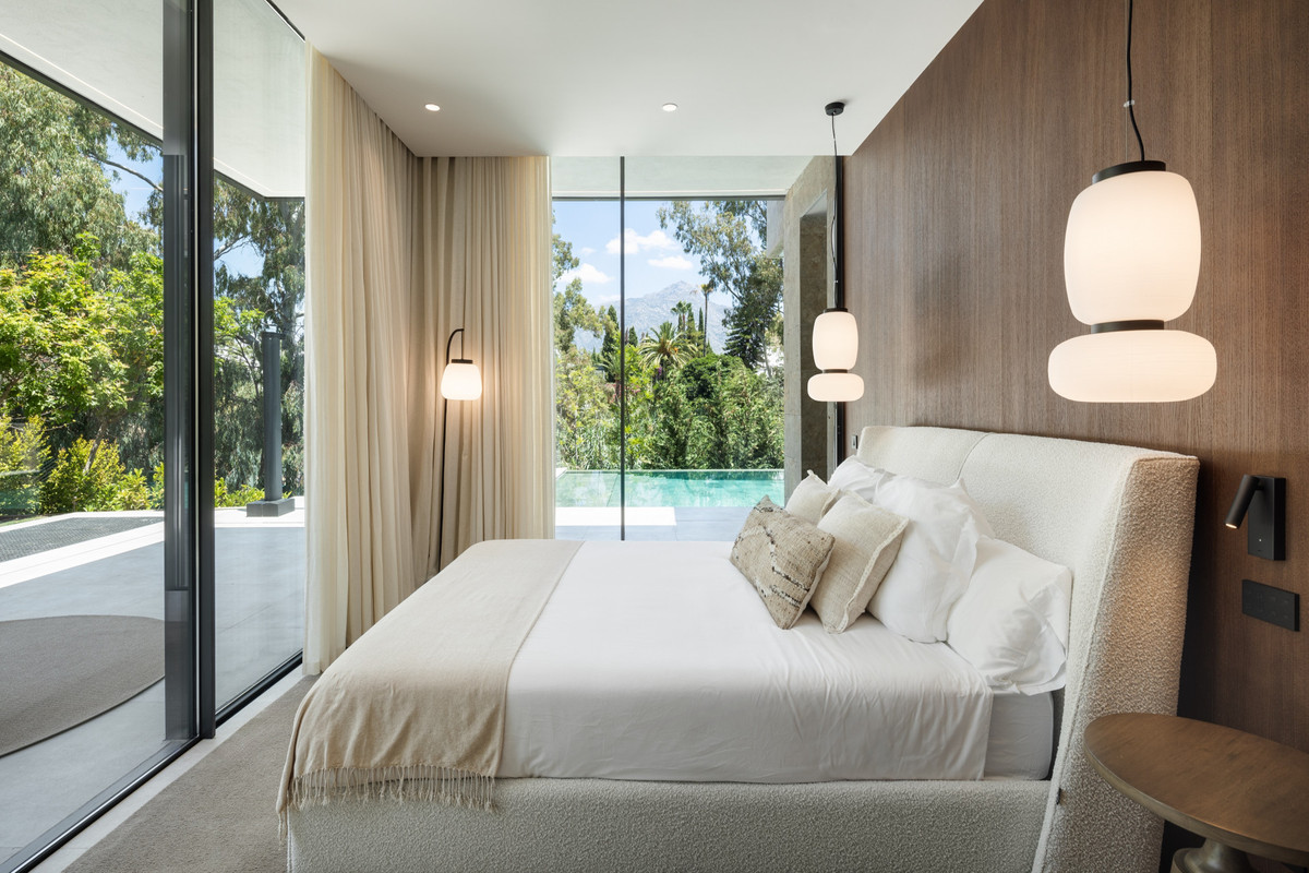 Nestled in the prestigious La Cerquilla community of Nueva Andalucía, this contemporary villa epitomizes luxury living. Masterfully crafted with organic materials, it seamlessly blends with its natural surroundings.