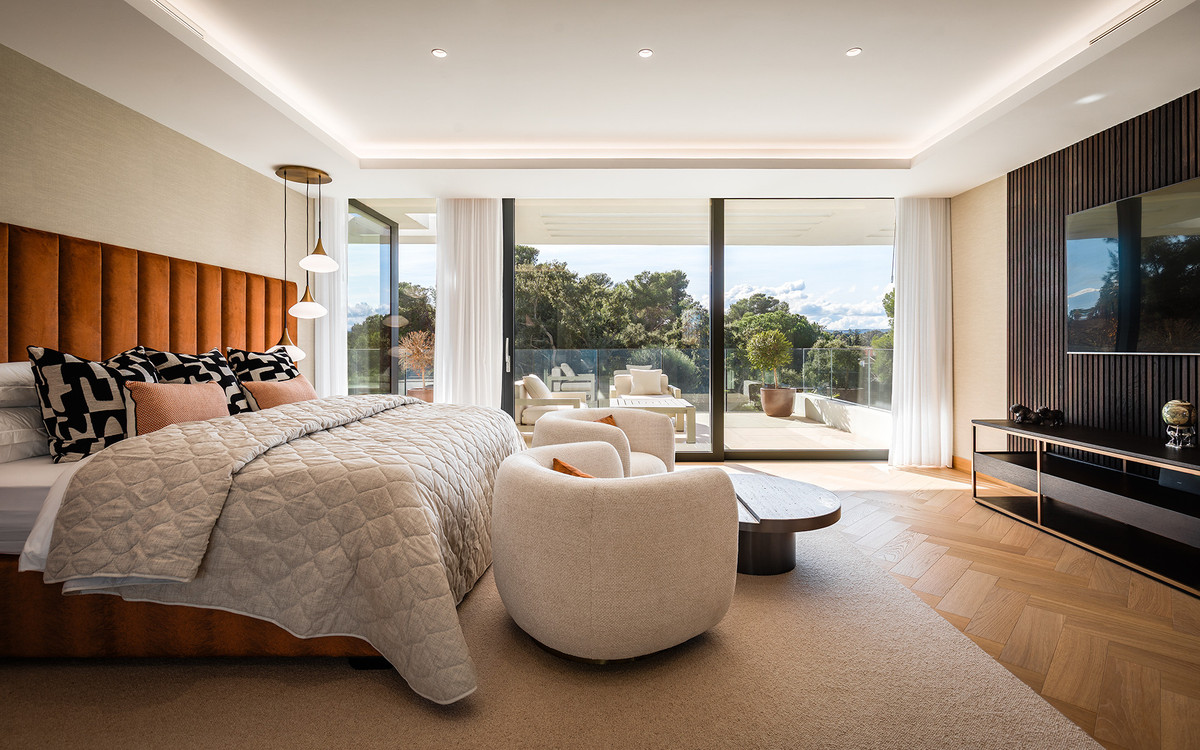 Casa La Colina is an exquisite modern residence set within the prestigious Kings and Queens enclave of Sotogrande Costa. Renowned for its broad, tree-lined avenues and proximity to the beach, marina, and premier golf clubs, this area stands as the most desirable location in Sotogrande. The home is positioned on a beautifully landscaped 3,828 m² plot, offering a seamless integration of contemporary architecture, open-plan interiors, and premium finishes—designed to elevate relaxed Mediterranean living and sophisticated entertaining.