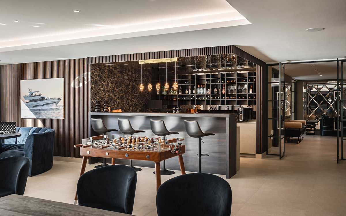 Additional features enhance the home’s appeal, including a dedicated wellness area with a sauna and steam room, a games room, and a private elevator that adds both convenience and accessibility. The rooftop solarium offers a stunning setting for relaxation, complete with a BBQ area, shower, and an open-air lounge boasting panoramic views—ideal for sun-soaked afternoons or evening gatherings.