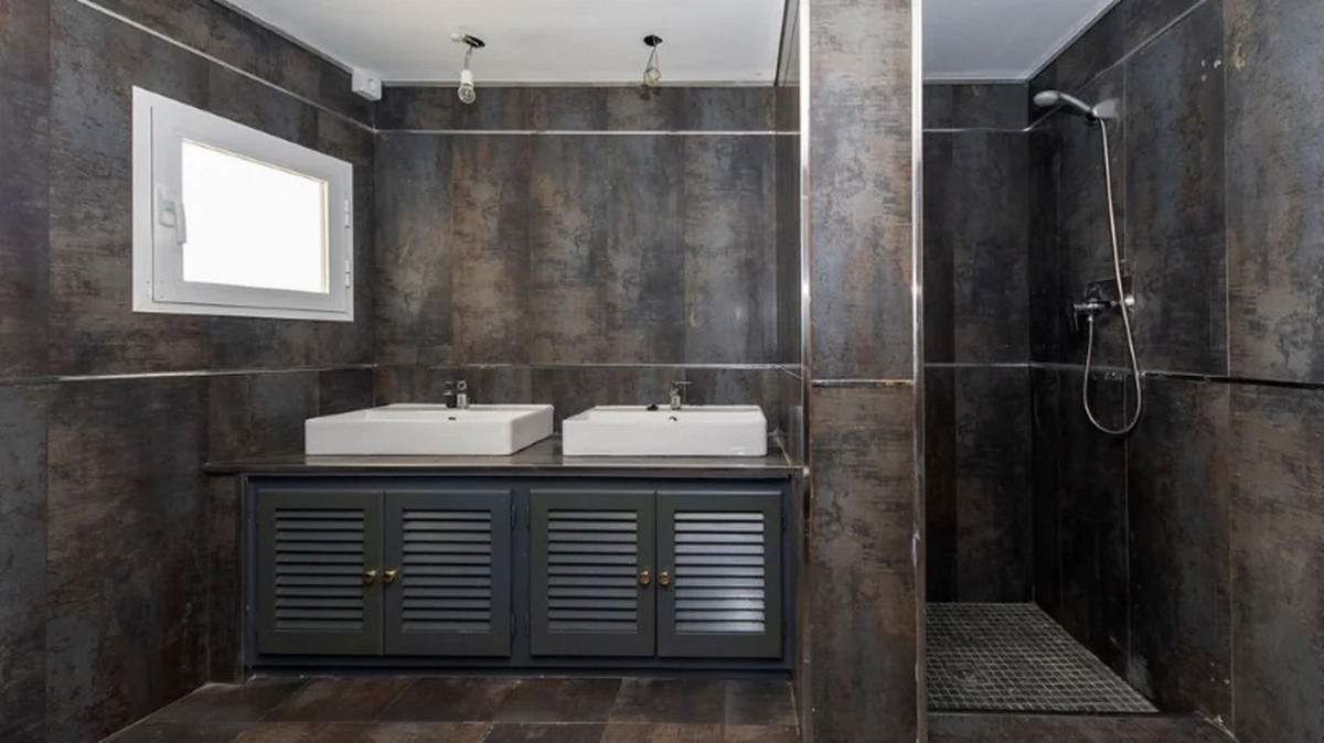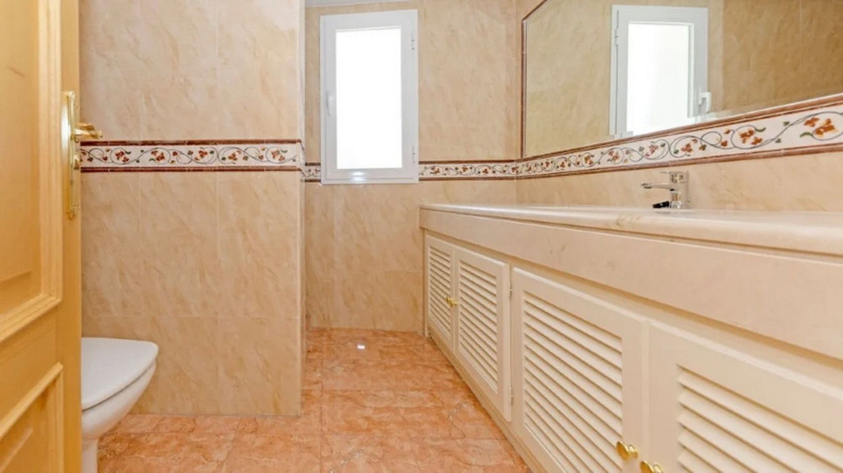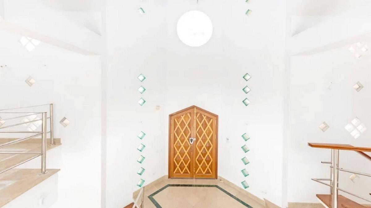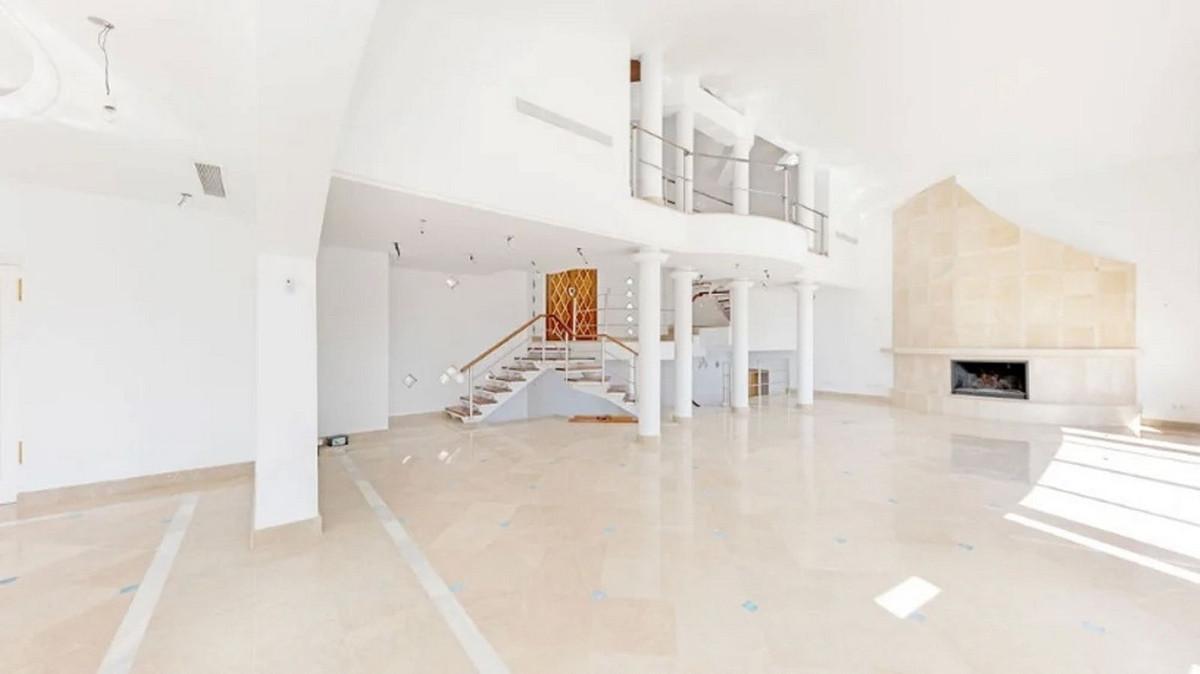 Detached house in the El Almendro Urbanization, Benahavís. It has a surface area of ​​919 m² distributed over 4 floors. The ground floor comprises a spacious living room, dining room, kitchen, access walkway to the hallway, 2 bedrooms with en-suite bathrooms, and 2 terraces. The upper floor, accessed from the street via the entrance porch, consists of an entrance hall, corridor, 1 bedroom with dressing room, 1 bathroom, and a terrace. The semi-basement level features a spacious garage with room for several vehicles, a games room, and two bedrooms with en-suite bathrooms. The basement level includes a bar area, dressing room, games room, and bathroom. The property sits on a 3,868 m² plot, which includes an entrance porch, parking area, and a large private garden with a swimming pool and jacuzzi, all with sea views. It comes equipped with built-in wardrobes, a fitted kitchen, a fireplace, and pre-installation for air conditioning. Located in a quiet residential area surrounded by several golf courses.
