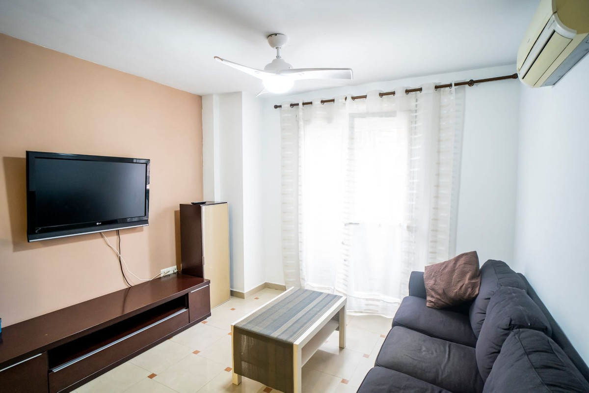 The property is distributed into two bedrooms, one full bathroom, an open-plan kitchen, and a bright living room. It has air conditioning in all bedrooms and is sold partly furnished.