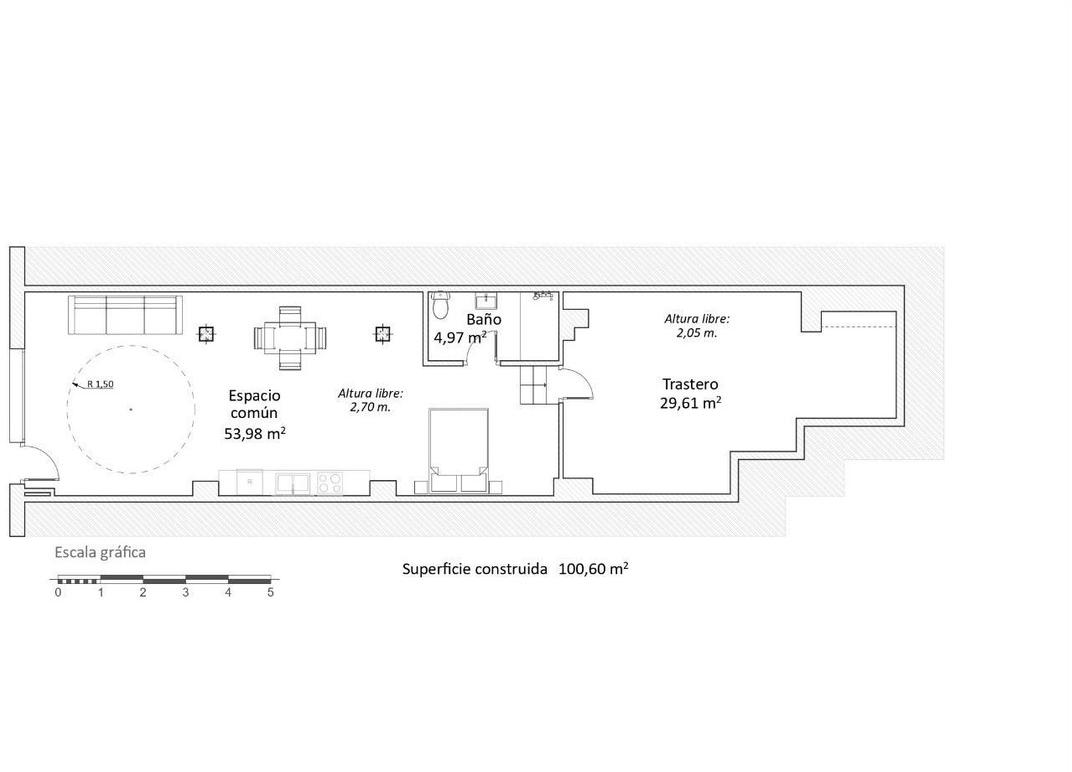 Upon entering, you are greeted by a large main living area, perfect for creating different environments or layouts according to your needs. Thanks to its generous size, it also offers the possibility of reorganizing the space and creating separate areas if desired.
