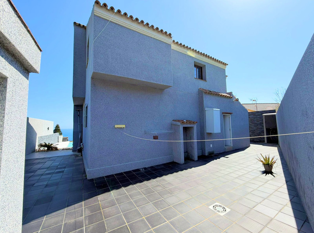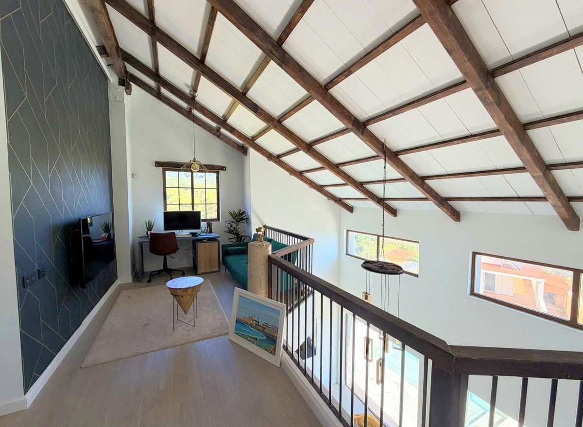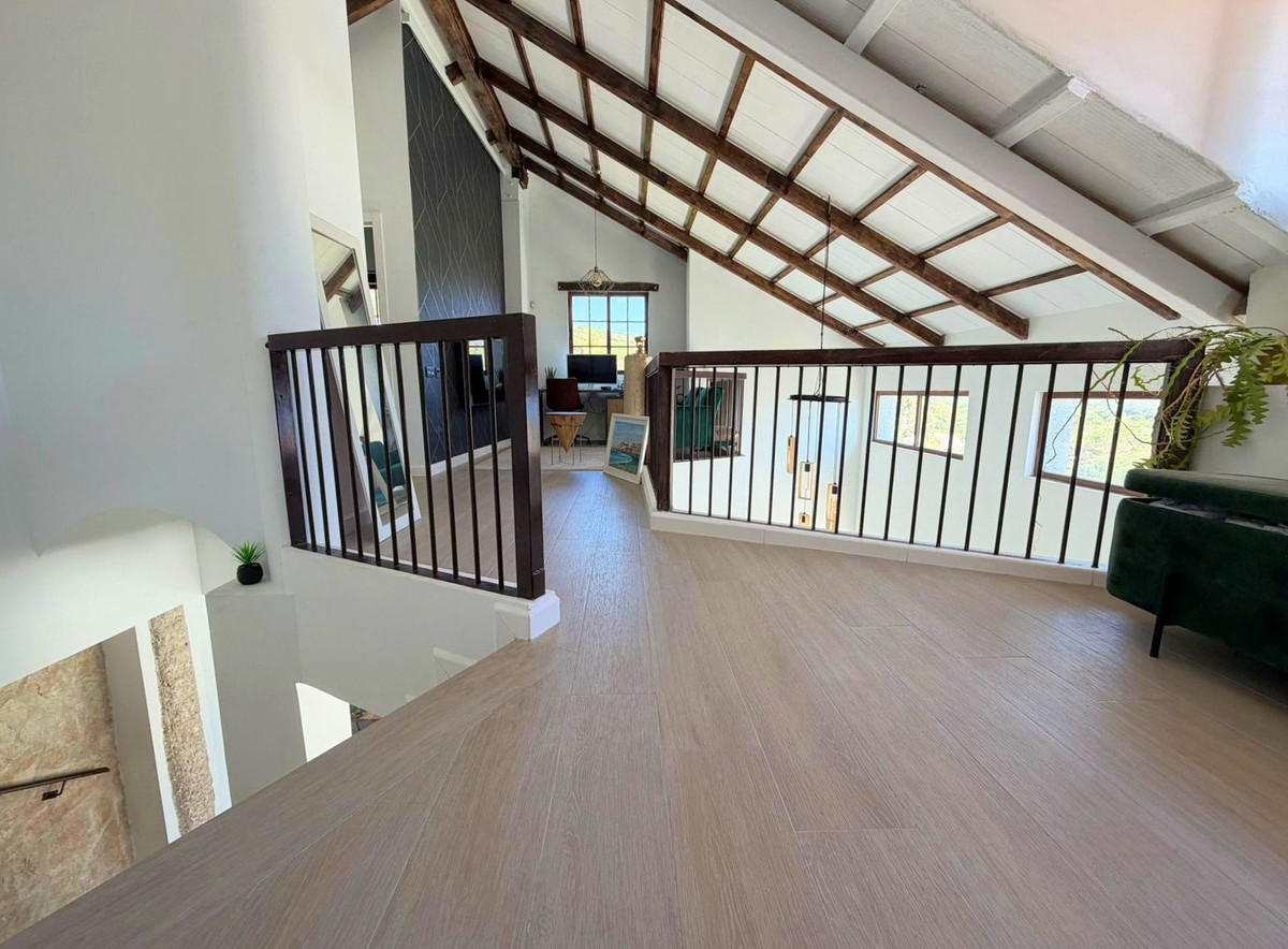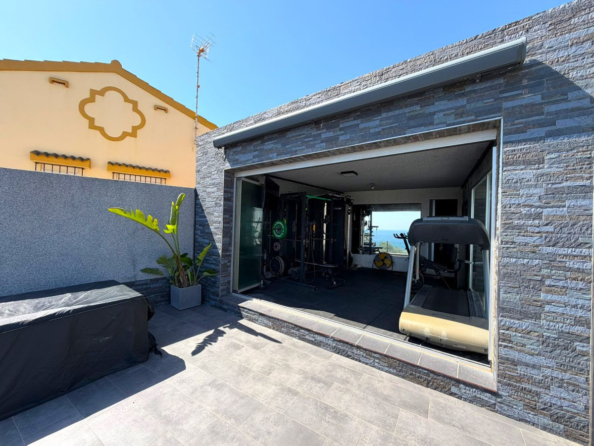 This spectacular, fully renovated villa is located in the მშვიდ and sought-after urbanisation of El Faro de Punta Carnero, surrounded by the Los Alcornocales Natural Park and just a few metres from the sea. It is the perfect place to enjoy nature without giving up the convenience of being close to the city. The property is distributed over two floors and stands out for its abundant natural light, with large windows that fill every space with brightness. The main floor features the living area: an entrance hall leading to a spacious living-dining room with access to a terrace offering stunning views, a fully equipped kitchen with an integrated dining area, a guest toilet, and a dressing room with access to a rear patio. The upper floor comprises two bedrooms and an en-suite bathroom with a hydromassage bathtub and shower, as well as an open space currently used as an office that could easily be converted into a third bedroom. Outside, the villa offers an infinity pool with an integrated jacuzzi, surrounded by a generous relaxation area, and a gym with a full bathroom and shower. The enclosed garage, with an automatic door, has a surface area of 45 sqm and space for two vehicles. Its location allows you to enjoy nature and outdoor activities such as hiking and cycling routes, water sports like paddle surfing or kayaking, and easy access to both the Costa del Sol and the Costa de la Luz, all just a few minutes from Algeciras.
