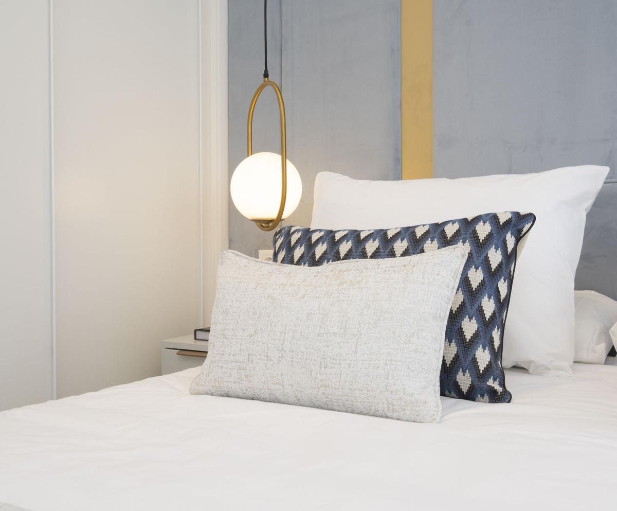 Bright master suite with a king-size bed, built-in wardrobe, and en-suite bathroom, located on the first floor.