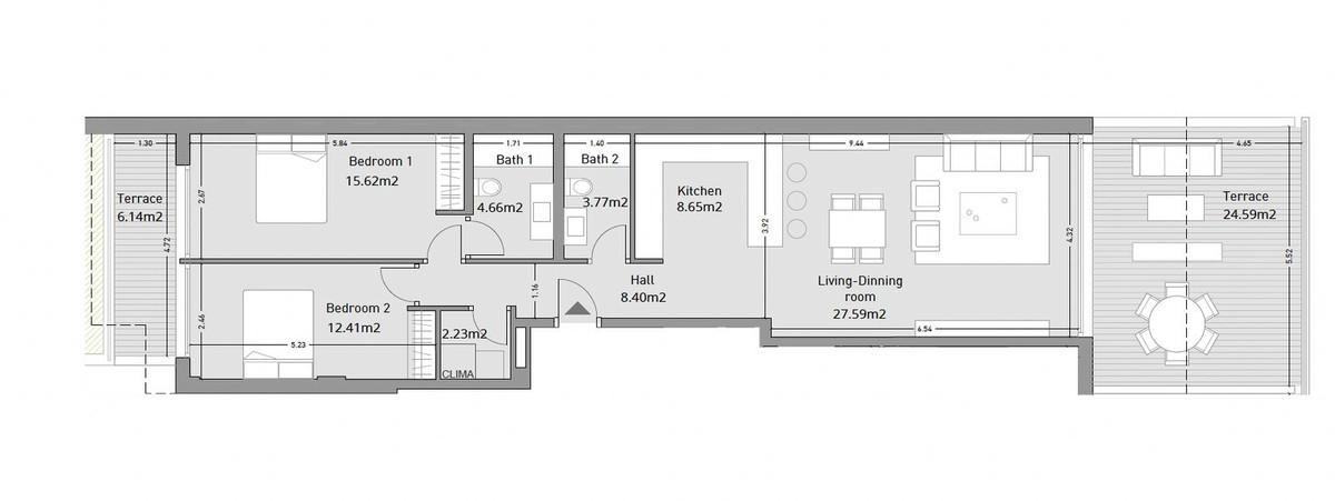 One of the apartment’s standout features is its beautiful terrace with sea views, the perfect setting to enjoy the Mediterranean climate all year round.