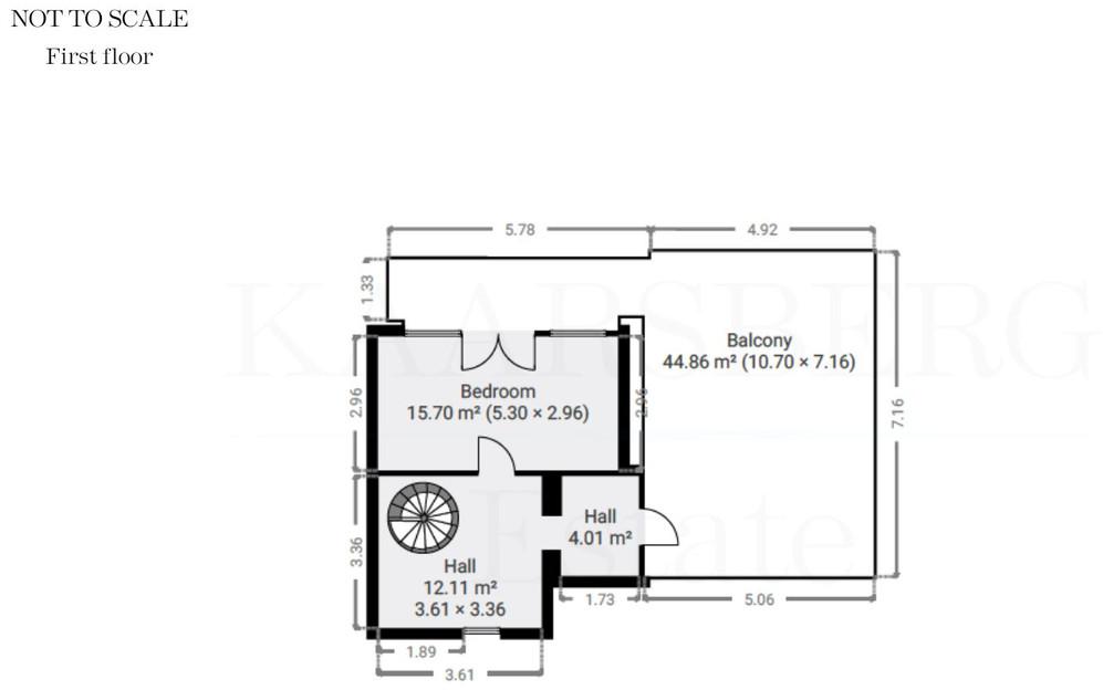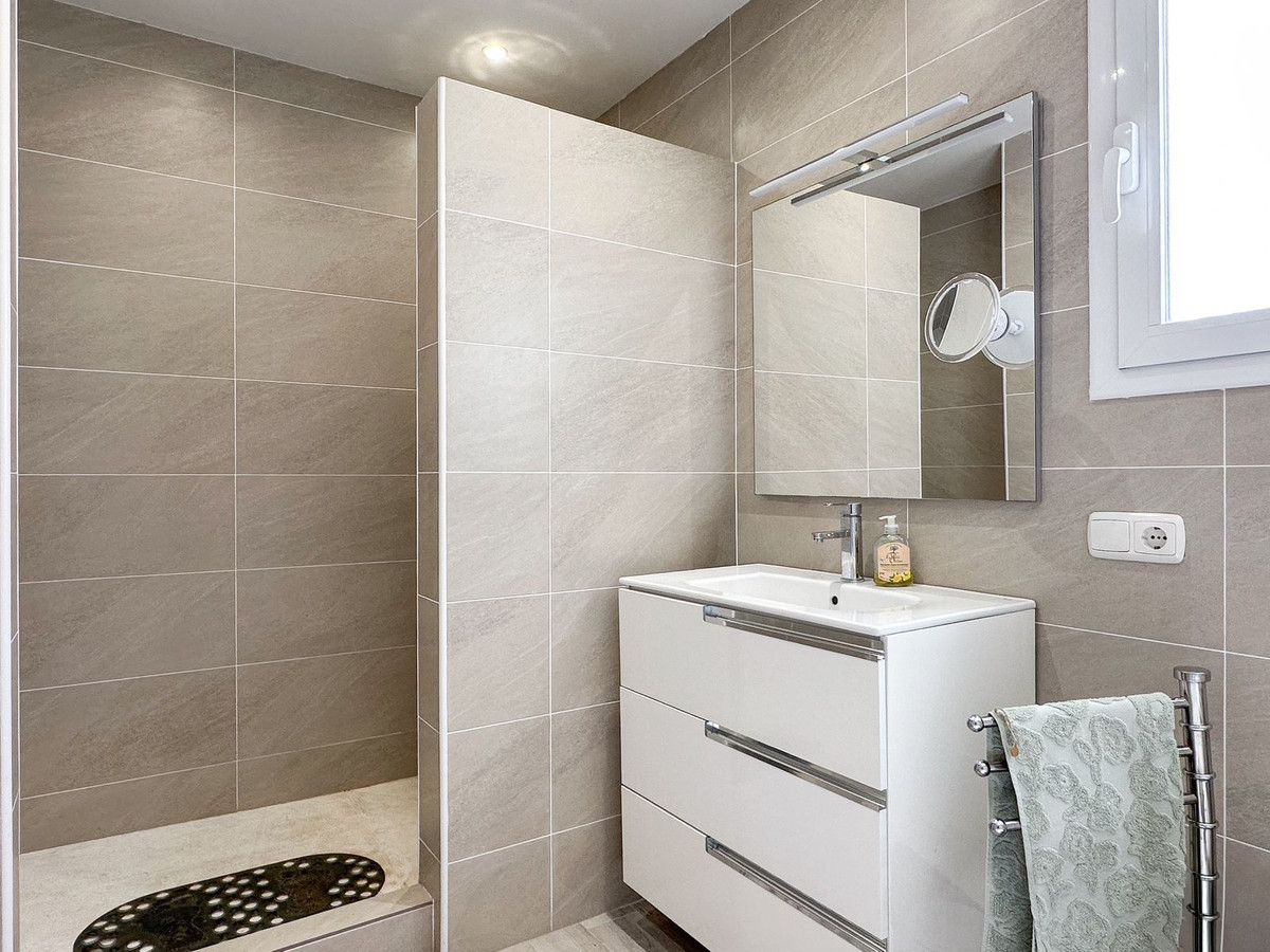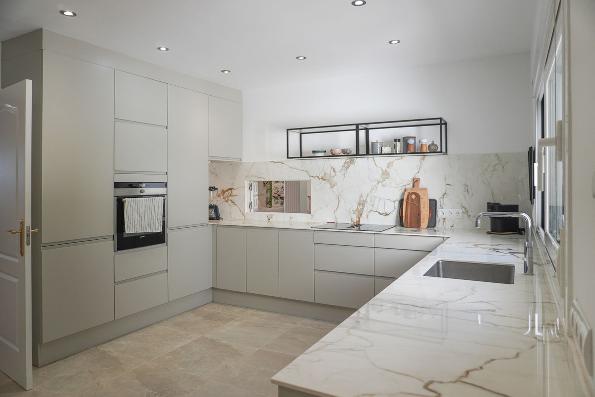 The spacious and bright living room opens onto a large terrace of 150m2 at the front of the house, where you will find a 40 m² swimming pool surrounded by plenty of space for sunbathing. From the living room there is also access to a large covered terrace of 65 m², ideal for outdoor dining, relaxing in the shade, or enjoying the mild Mediterranean climate throughout the year.
