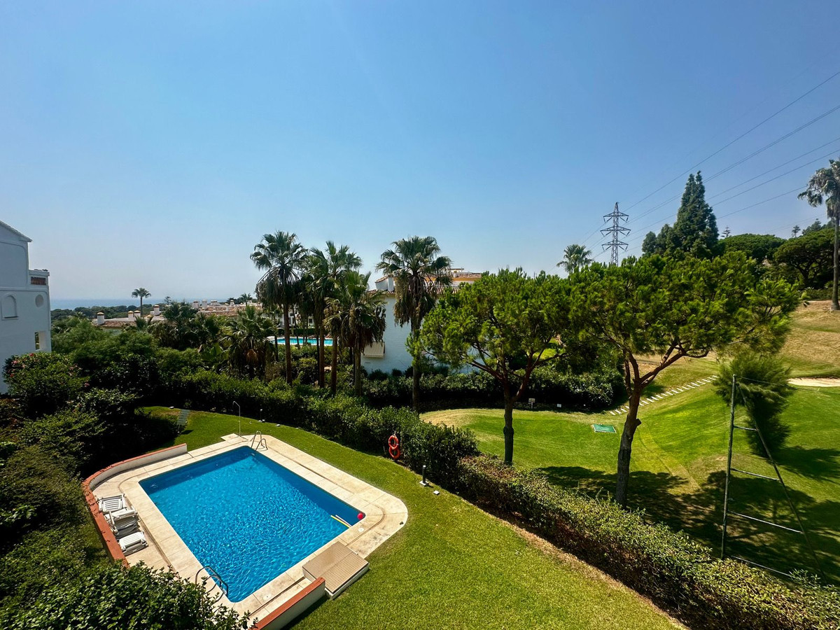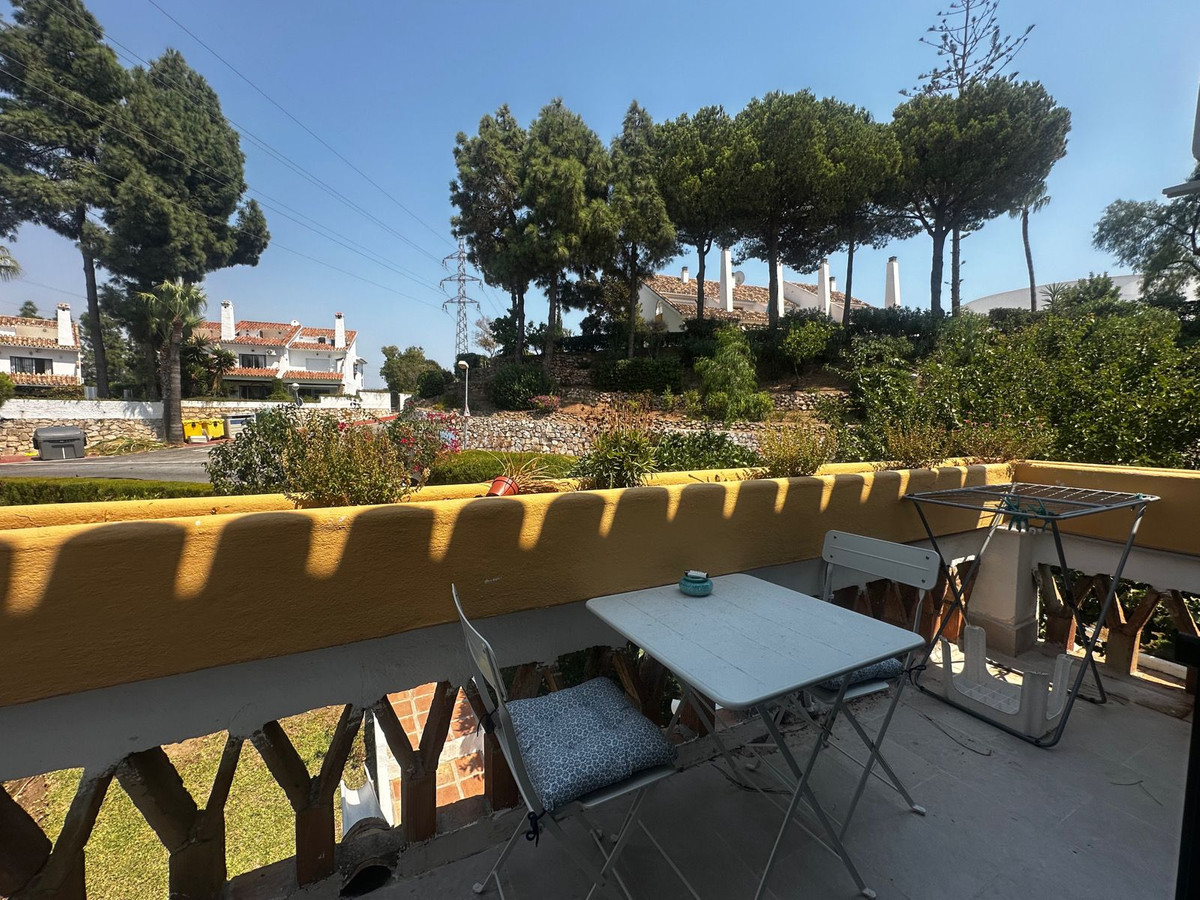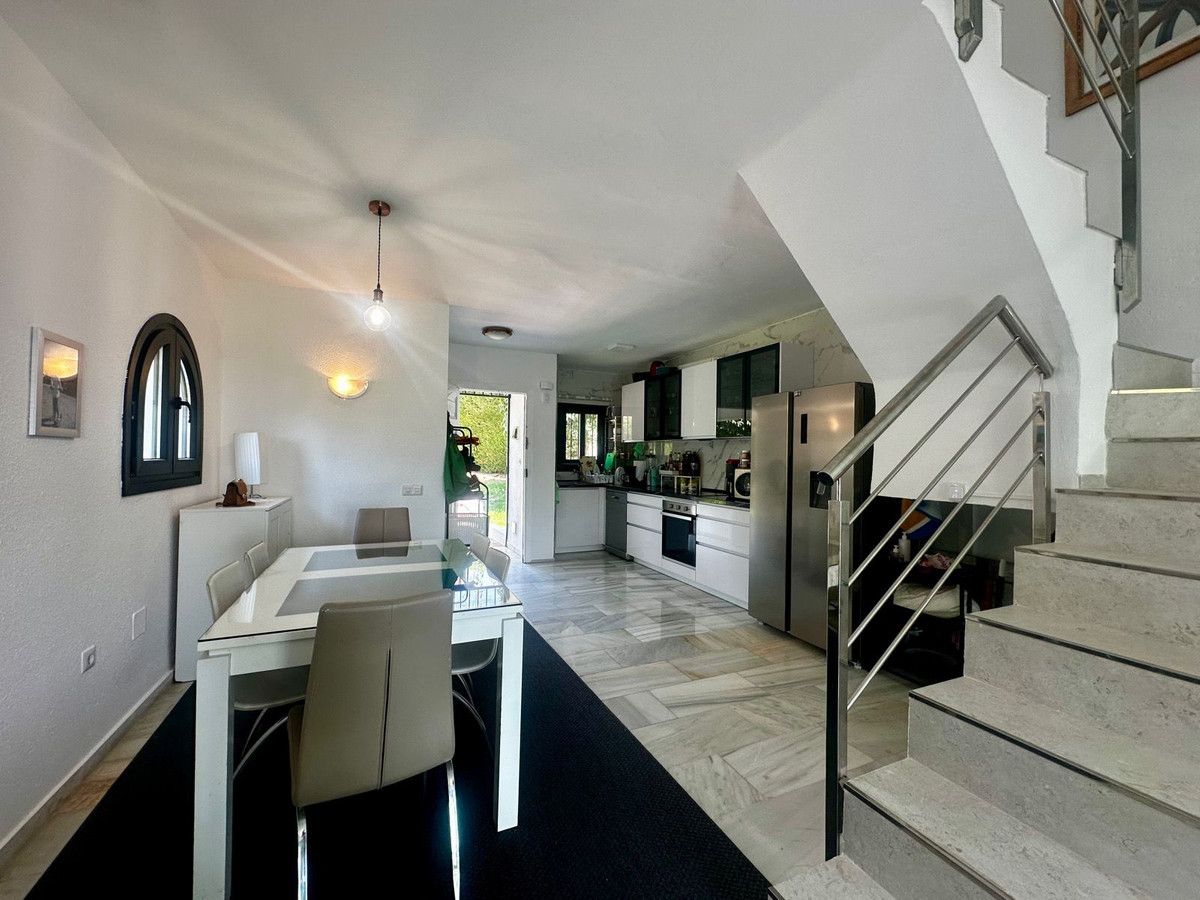 Charming semi-detached house in Calahonda, located on the first line of a golf course within a quiet residential area with a communal pool and beautifully maintained gardens.