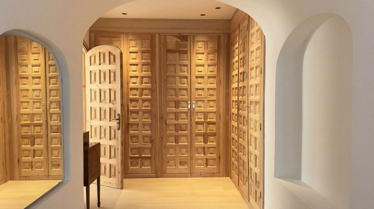 Your journey home takes you along the characteristic forest road of the Barranco Blanco, immediately surrounded by the healing scent of pine trees and wild thyme. You pass the imposing gate and drive past your own fenced tennis court and the completely detached guesthouse, which is situated at a respectful distance from the main villa. This ensures that both you and your guests enjoy complete discretion.