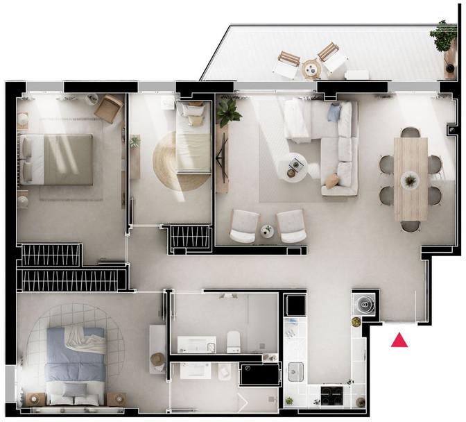 3 Bedrooms, 2 Bathrooms, Built 79 m², Terrace 4 m².