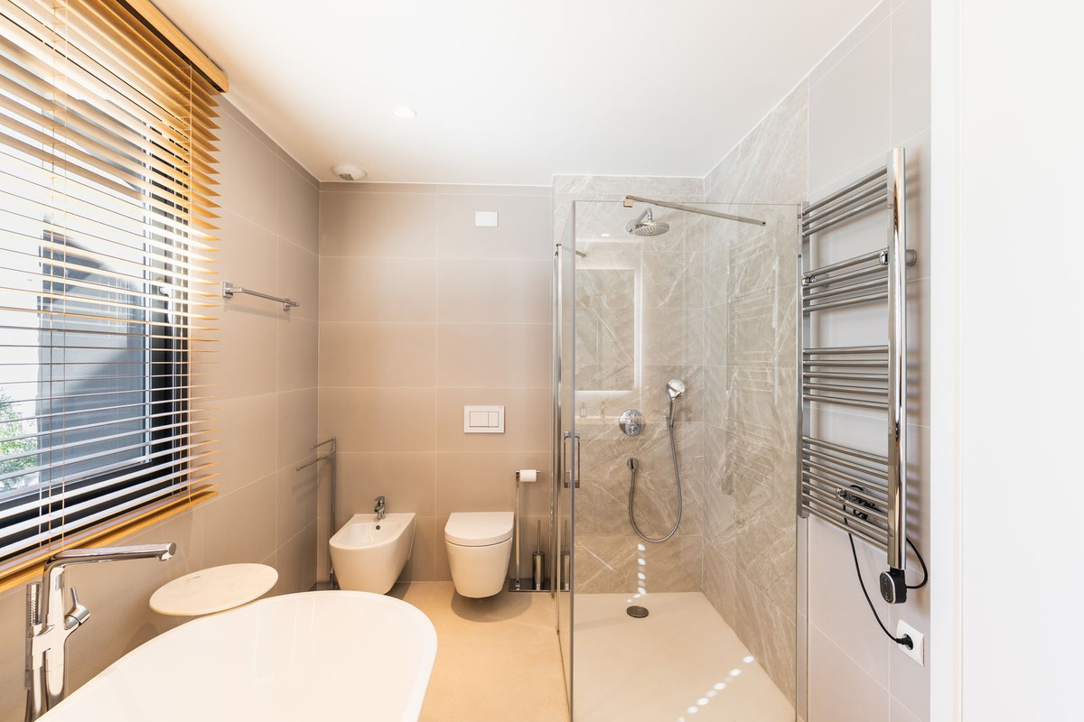The villa offers 4 spacious bedrooms and 4 modern bathrooms, designed to combine comfort and functionality. The bedrooms are bright, large, and fitted with ample wardrobes, providing the perfect space for relaxation and everyday family life. The master bedroom as well as one of the guest bedroom on the 1st floor offers private terrace with panoramic views over mountain, golf and Mediterranean Sea.