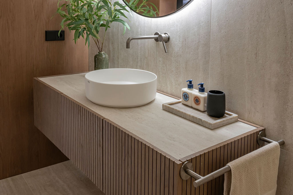 Built with high-quality materials and modern construction techniques, the property features elegant wooden finishes, brick walls for durability, gypsum pocket sliding doors and contemporary metal and glass doors and partitions, combining aesthetics with practicality.
