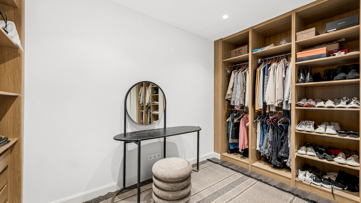 Upstairs are two generous double bedrooms and a large family bathroom. A few steps further lead to the expansive master suite occupying nearly 120 m², complete with a luxurious bathroom, walk-in wardrobe, spacious bedroom with dual aspect views, Juliet balcony, and private sun terrace.