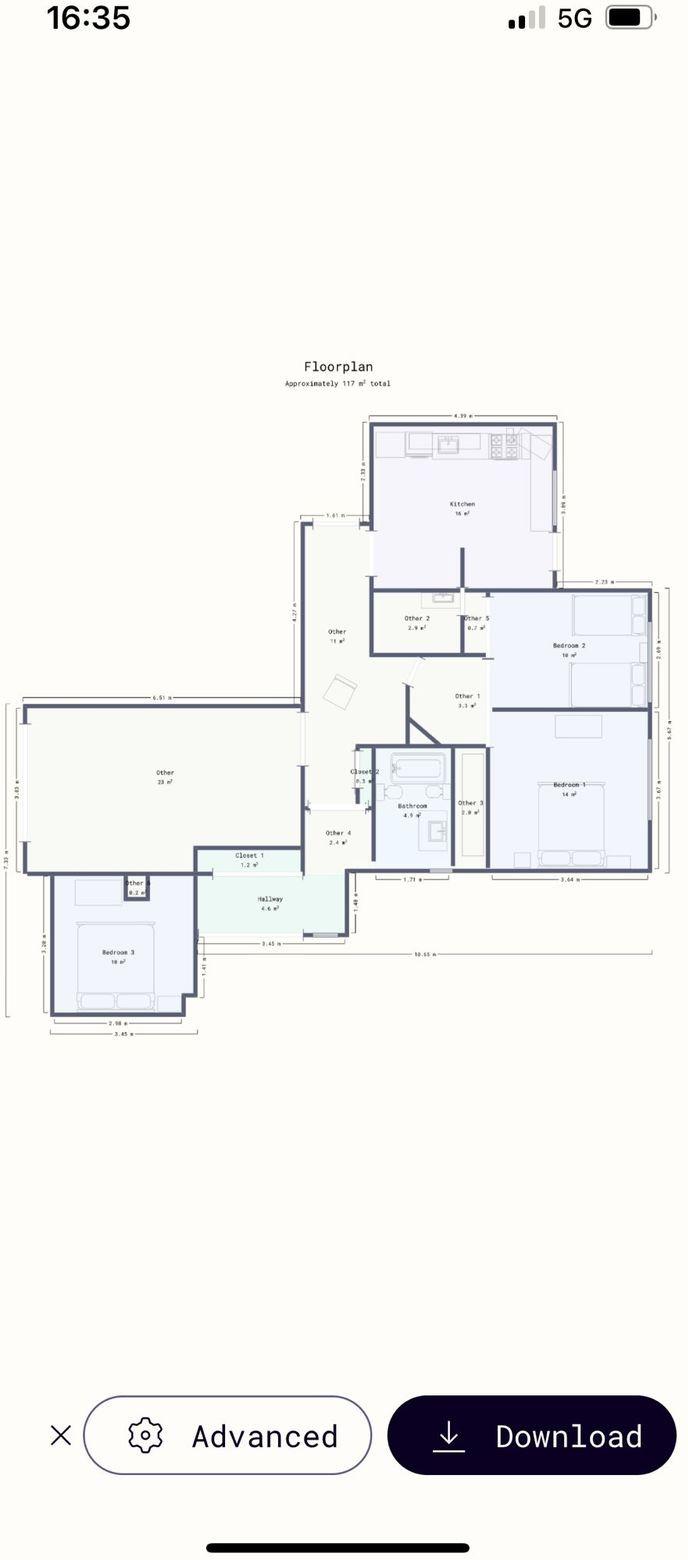 Please note: the images of the living room and kitchen have been enhanced using AI to illustrate the potential of the space in terms of design and atmosphere. The bedrooms are shown as they are in reality.