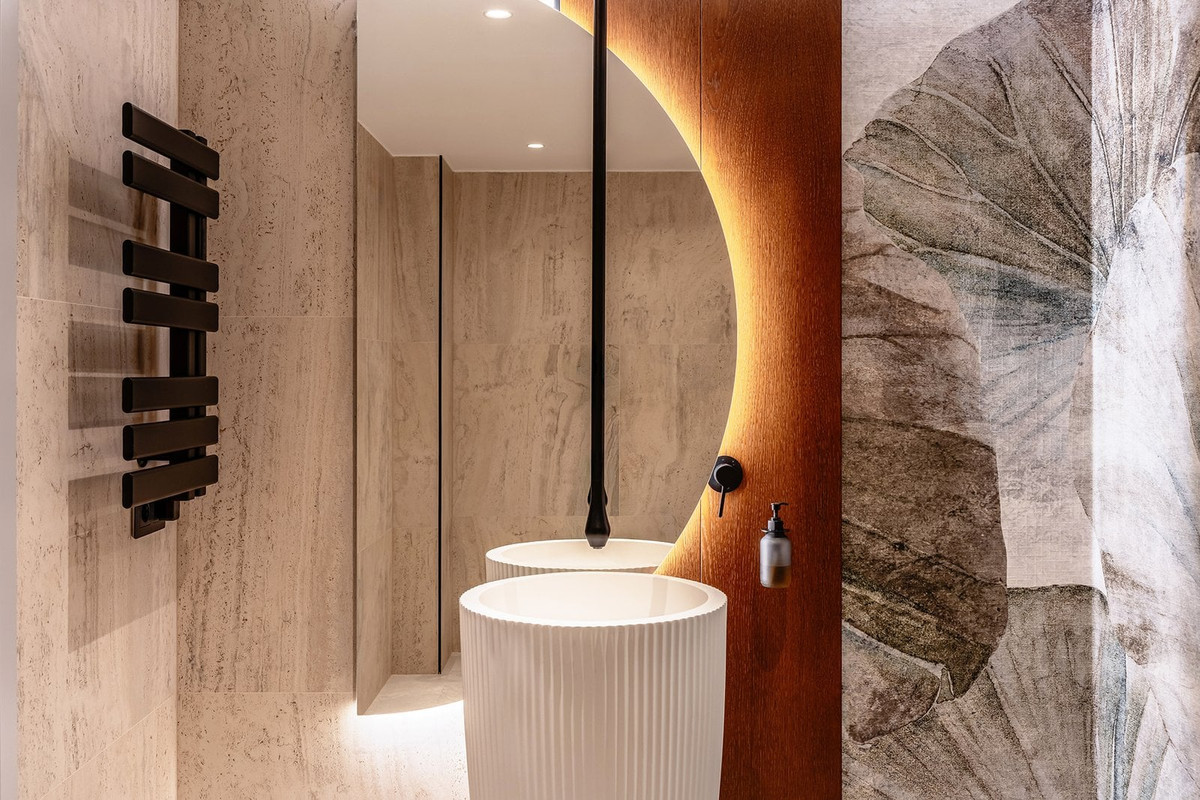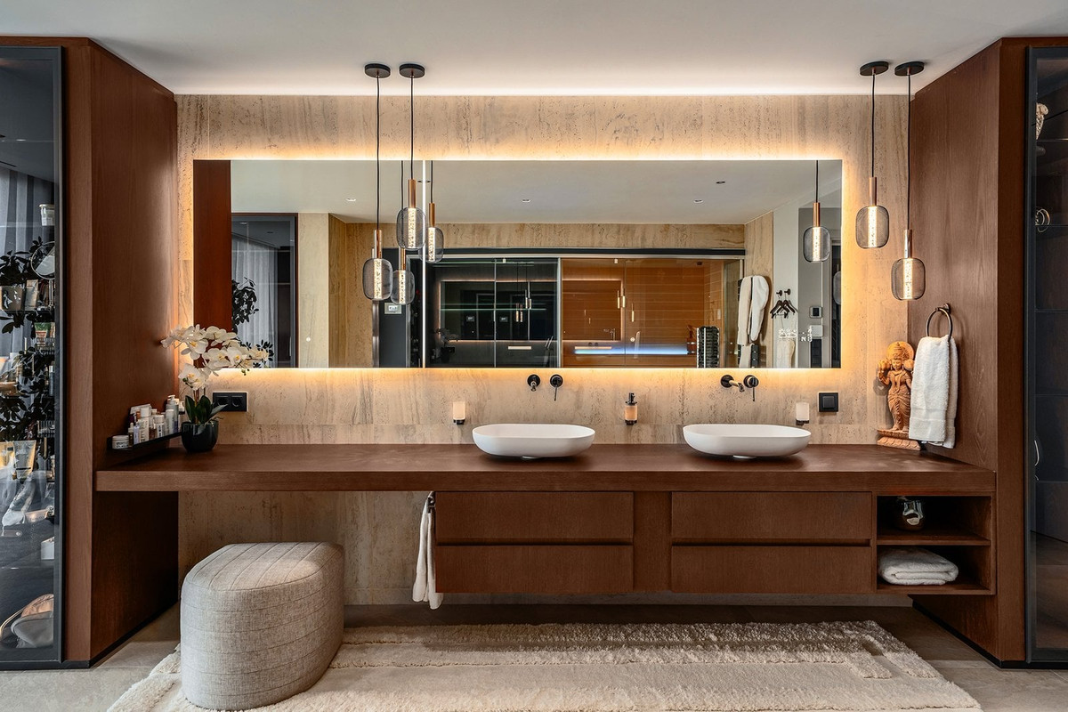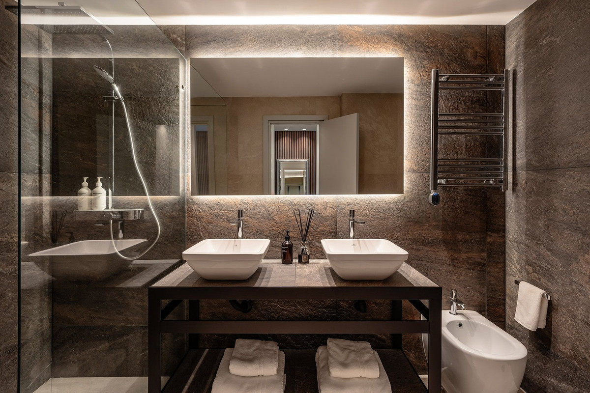 The master suite stands out as a private retreat, complete with a walk-in wardrobe and a spa-inspired bathroom including sauna, steam room and hydrotherapy bathtub. This villa offers a rare blend of design, lifestyle and practicality in one of Marbella East’s most sought-after locations.
