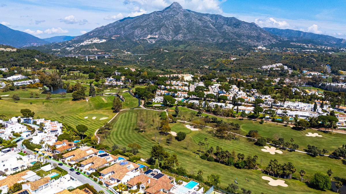 Introducing an exceptional Andalusian villa set in a prime frontline position overlooking Aloha Golf Club, where breathtaking panoramic views extend across the fairways to the iconic La Concha.