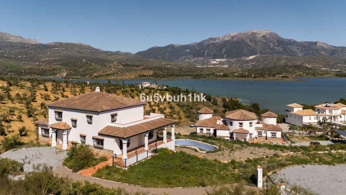 Some houses have a view. This one has a lake at its feet and a mountain range as its frame.An Andalucian-style villa with a modern soul, elevated above the shores of Embalse de la Viñuela — Málaga's largest reservoir — with uninterrupted water and mountain views in every direction. 400 m² of interior space. A fenced 4,230 m² plot. Six bedrooms, five bathrooms, multiple terraces, a pool, a large garage, and a fully independent guest apartment. The proportions are generous. The setting is quietly extraordinary.The top floor belongs entirely to the principal suite. Large en-suite with shower and jacuzzi. A substantial terrace looking straight out over the pool, the gardens, the lake, and La Maroma beyond. Nothing to interrupt it. Nothing ever will.The main floor is where daily life happens effortlessly. An open living, dining and kitchen space wraps around a fireplace and opens directly onto the front terrace. A side entrance into the kitchen keeps the rhythm easy. Three further bedrooms in the left wing: one en-suite with walk-through wardrobes and those same lake views, direct terrace and pool access; the other two sharing a generous family bathroom, both with fitted storage. A guest WC completes the level.Below, the house reveals its practicality without losing its character. Laundry room, playroom or storage, a double garage with space for motorcycles and more. And to one side, a fully self-contained apartment — two bedrooms, bathroom, kitchen, living room, large terrace doors to the pool, its own separate entrance. For family. For guests. For whoever needs their own space within yours.Throughout: sand-coloured marble floors and bathrooms, electric shutters on every window, centralised ducted heating and cooling.The seller has left the kitchens, solar panels, home automation and garden for the buyer to complete. Not because the house is unfinished — but because the best owners rarely want to inherit someone else's taste.The real luxury is none of that.It is the light on the water in the morning. The mountains at dusk. The terrace lunches that run too long. Children growing up with space and air and time. A life with a more beautiful rhythm — and still thirty-five minutes from Málaga, twenty from the coast, forty from the airport.A family home for people who chose well.