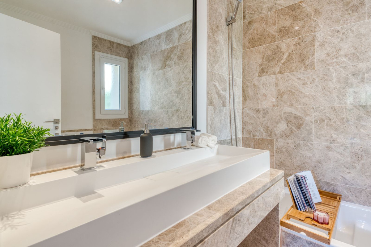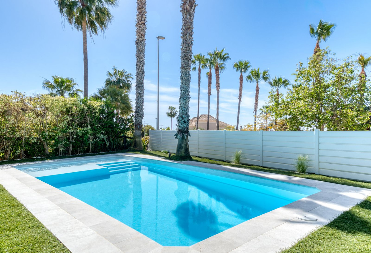 Set within an exclusive residential area in Marbella, this beautifully reformed semi-detached villa combines modern design, advanced technology and energy-efficient living to create a high-quality contemporary home. The interior has been thoughtfully redesigned to offer bright, open-plan living spaces, centred around an elegant living and dining area with a fully integrated kitchen. Large windows maximise natural light and connect seamlessly to the outdoor terraces and garden, while also offering pleasant sea views from the main living areas.