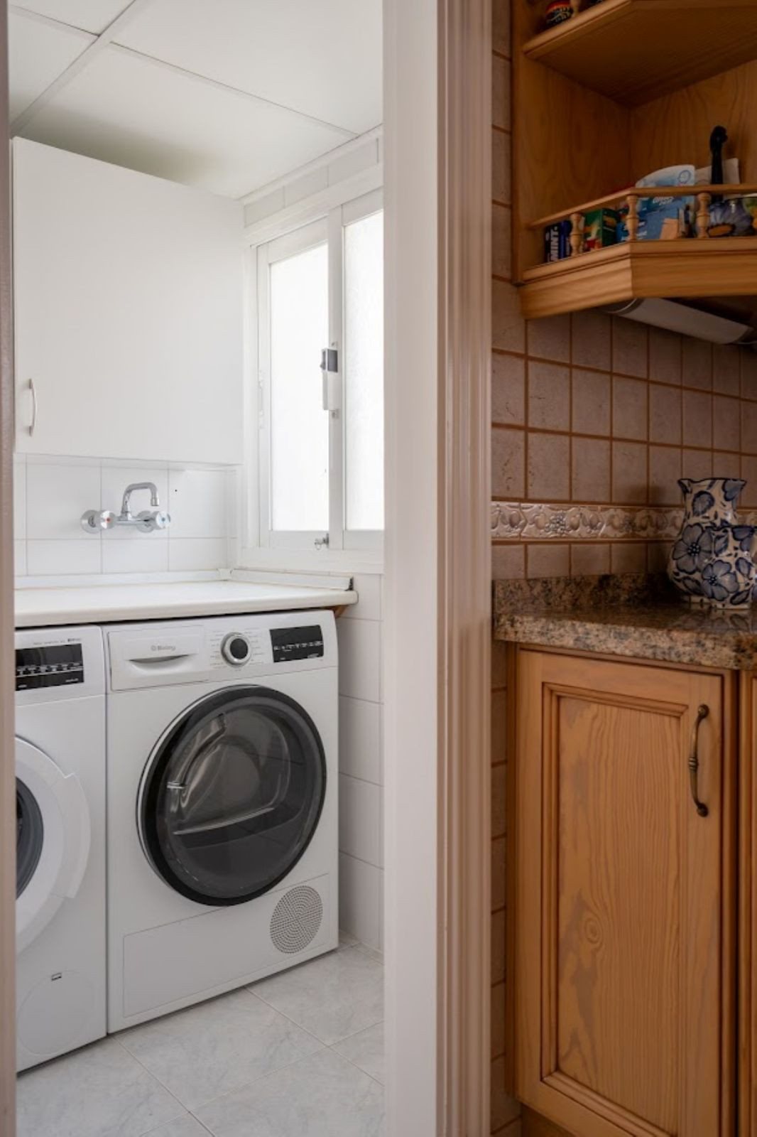 With a bright interior and large terraces, the house offers plenty of room for relaxation and entertaining. The property features four spacious bedrooms and three bathrooms, including a master bedroom with an en-suite bathroom. The living and dining areas are complemented by a chimany, creating a cozy atmosphere. The kitchen is fully equipped and leads to a laundryroom. The living room and bedrooms are fitted with air conditioning, ensuring year-round comfort. A guest toilet, fitted wardrobes and high-speed fibre-optic internet are additional features of this home.