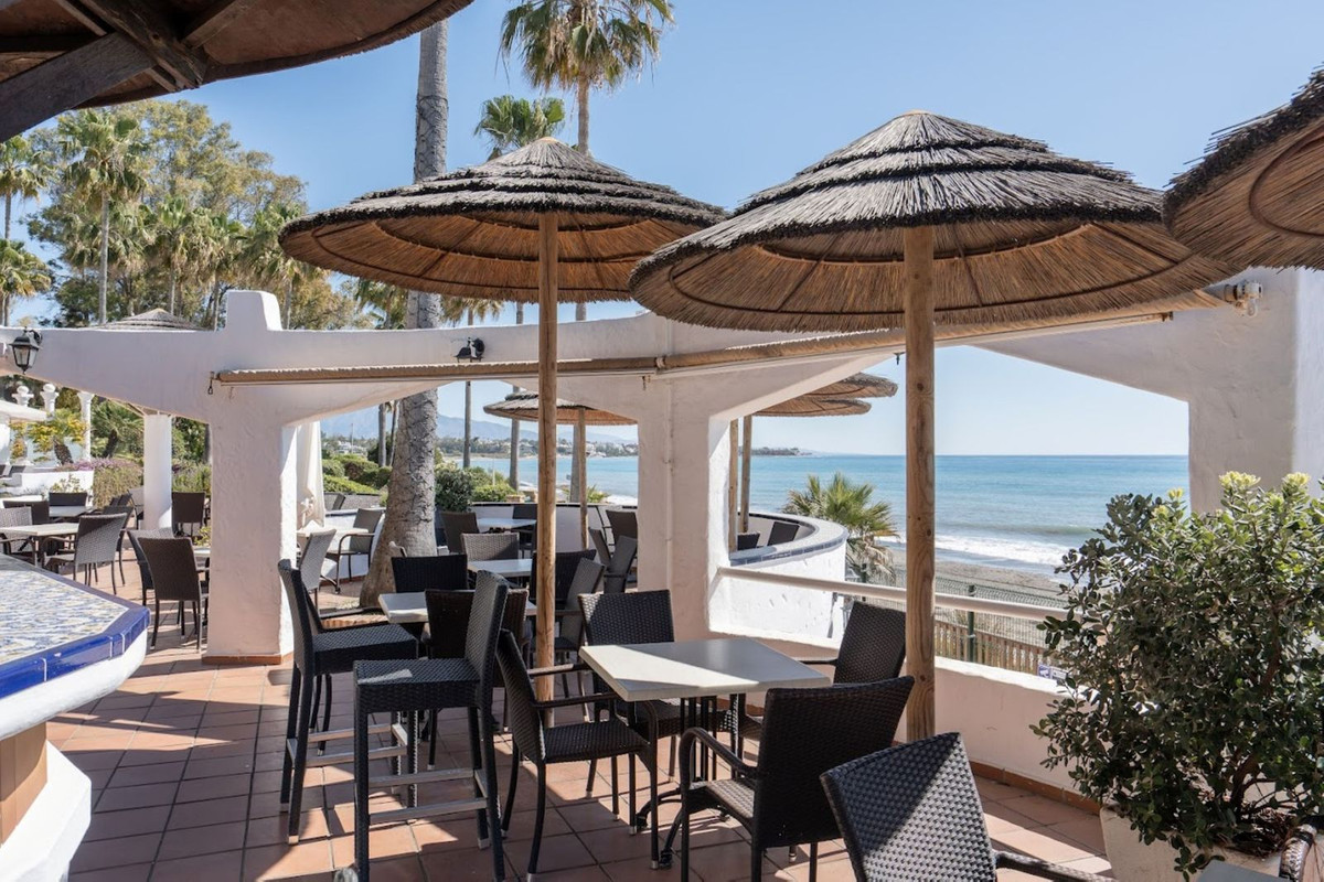 Dominion Beach is an established residential complex renowned for its distinctive Andalusian architecture and lush subtropical gardens, which create a serene, tropical setting. The complex boasts a range of first-class amenities, including three outdoor swimming pools, a children’s pool and a wellness centre offering massage treatments. The beachfront communal terrace offers direct access to the sea, ideal for enjoying the Mediterranean climate, whilst the summer beach bar and full-service restaurant provide a relaxed dining experience by the sea. The gated community features 24-hour security for your peace of mind, a gym, a social area and a management office. For water sports enthusiasts, there is a private ramp to facilitate access to jet skis, water skiing and windsurfing. The area is well connected to shops, restaurants and playgrounds, making it an ideal choice for both families and professionals. With its peaceful surroundings, excellent amenities and prime location, this duplex penthouse offers a perfect combination of luxury and comfort in Estepona.