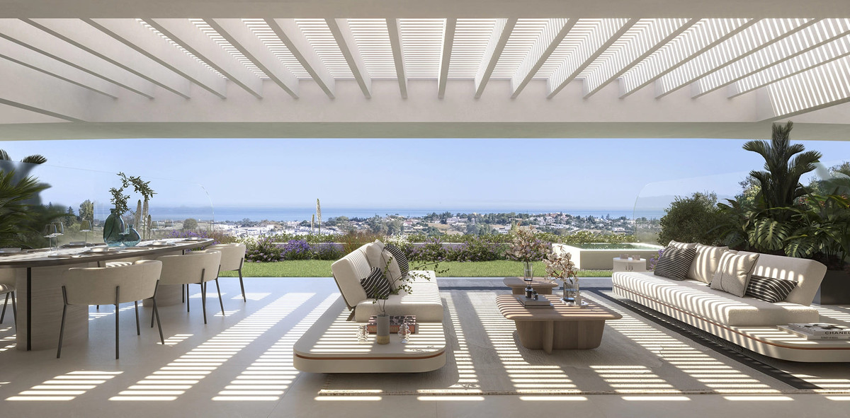 Set within the peaceful hills of Benahavís, this elegant residence offers breathtaking open views across the surrounding countryside and out towards the Mediterranean Sea. The property combines contemporary architecture with spacious interiors and large terraces, creating a seamless indoor-outdoor lifestyle typical of the Costa del Sol.