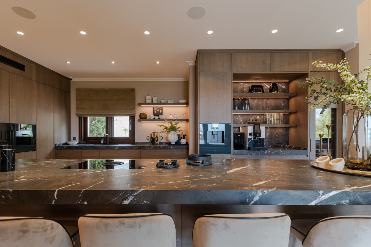 Gaggenhau appliances, all of which lead out to the expansive terrace where you can relish in lounging, dinning and barbecuing, while taking in the stunning sea and mountain views. From this terrace area you can then enjoy the large heated pool were due to its south