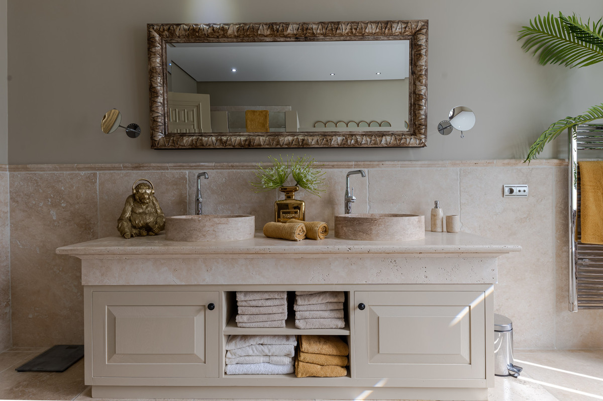 Inside, the villa has been carefully renovated, retaining its traditional Spanish charm while providing modern amenities. The luxurious interior includes an elegant main living room with vaulted ceiling, dining area, a second cosy living room, bespoke modern kitchen with