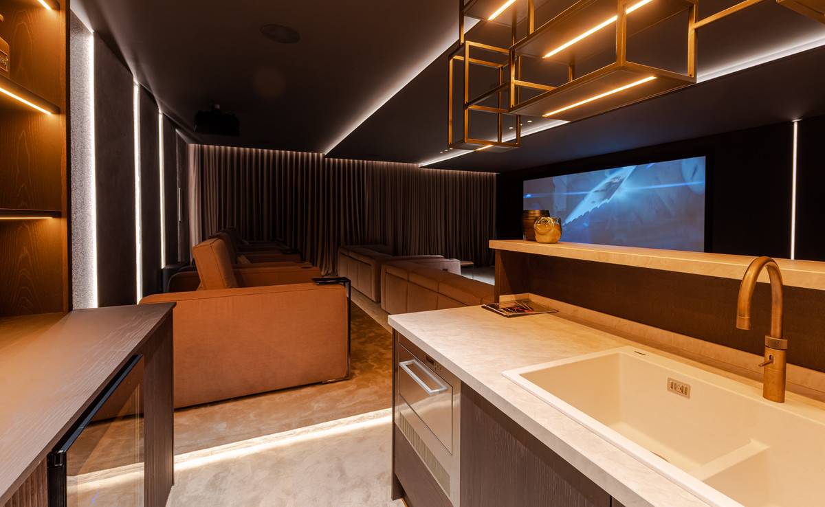 On the lower level of this villa you will find the magnificent cinema room with its elegant bar, a fully equipped gym, sauna, private office, two further guest bedrooms with en-suite bathrooms and finally the garage for at least 4 cars. These are just some of the features that this fabulous family home has to offer so whether you’re looking to relax and enjoy the stunning views or indulge in luxurious amenities, this villa has something for everyone.