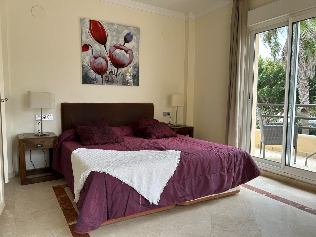 Maison individuelle en première ligne de golf, au sein du club San Roque, avec jardin privé et piscine commune, orientation sud-ouest. Cette magnifique maison dispose de 3 dortoirs et 3 places de parking, d'un salon avec cheminée, d'un jardin privé privatif ainsi que de jardins communs et d'une grande piscine commune. Elle comprend une grande cuisine avec salle à manger et une buanderie séparée. Avec 70 m² de jardin privé et un parking couvert à l'arrière de la maison. En plus du superbe jardin privé, elle bénéficie d'un solarium offrant une vue exceptionnelle. La maison est exposée sud-ouest depuis le salon et le solarium assure un confort optimal en hiver. Elle est équipée de la climatisation réversible, du chauffage au sol dans les salles de bains et est entièrement meublée et équipée. Sols en marbre et grande luminosité.