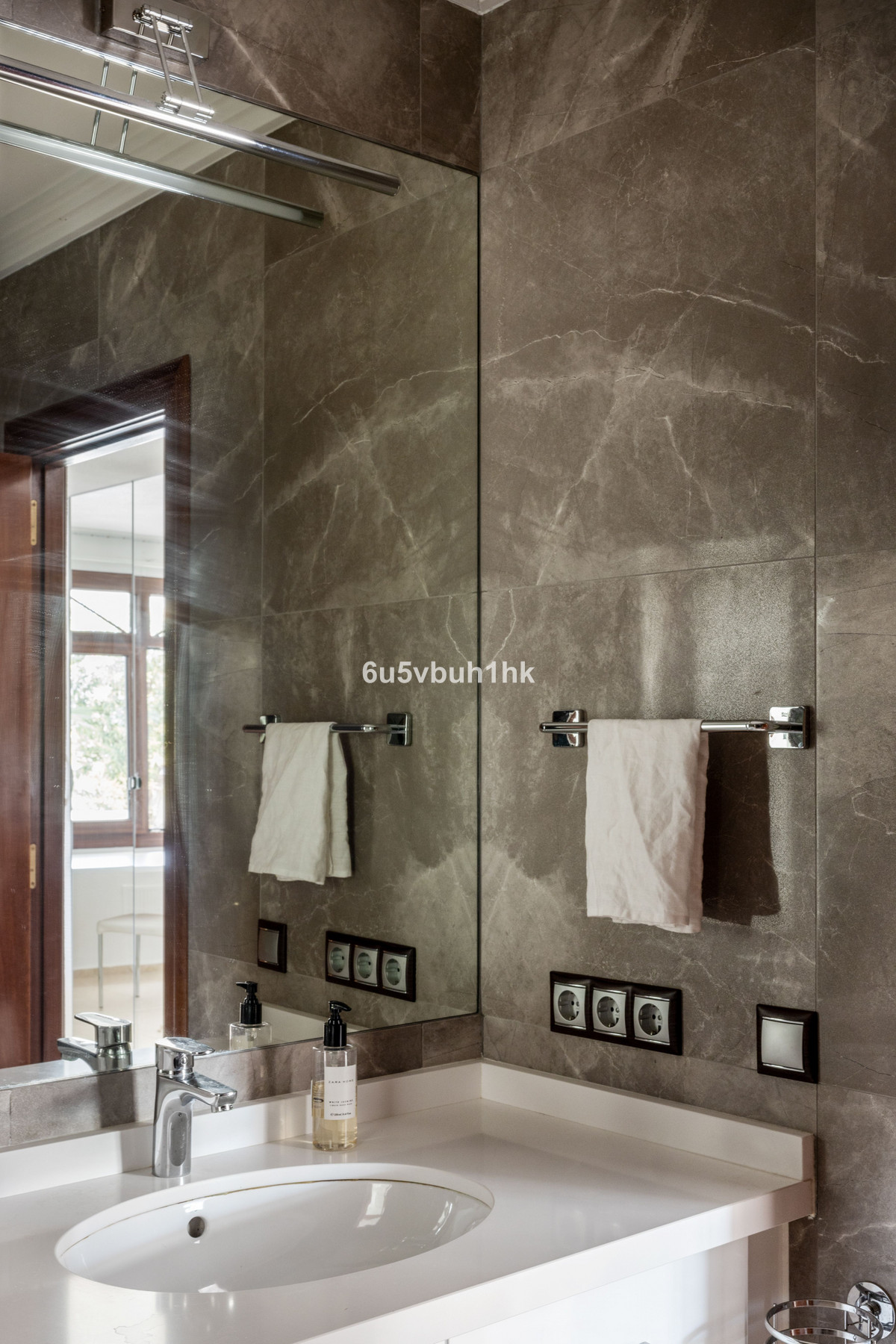 Votre propre havre de paix privé, la Villa Palmeras, au cœur de la Costa del Sol. Cette propriété recèle une multitude de détails raffinés. Le rez-de-chaussée comprend un vaste hall d'entrée, une salle à manger, une cuisine, une buanderie, de grandes terrasses, une cour intérieure spacieuse, un garage double et un accès à l'aile nord du bâtiment. Celle-ci abrite une immense suite avec salle de bains privative, dressing et terrasse. Cinq chambres, chacune avec sa propre salle de bains, se trouvent au premier étage. On y trouve également une chambre indépendante, une salle de bains pour les invités et, bien sûr, un accès à la piscine.