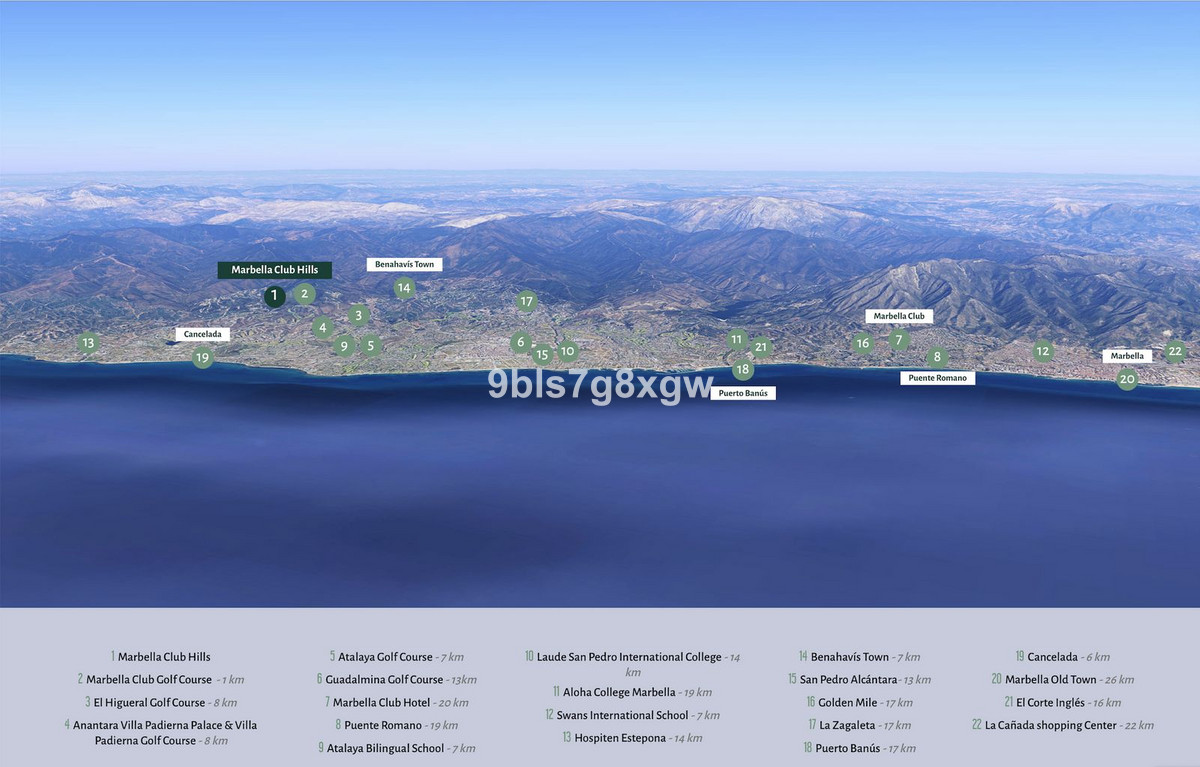 Située à Benahavís, dans l'enclave exclusive entre le célèbre Marbella Club Golf Resort et l'emblématique Anantara Villa Padierna Palace, cette propriété exceptionnelle se trouve à seulement 20 minutes d'Estepona, 30 minutes du centre-ville de Marbella et 55 minutes de l'aéroport international de Málaga.