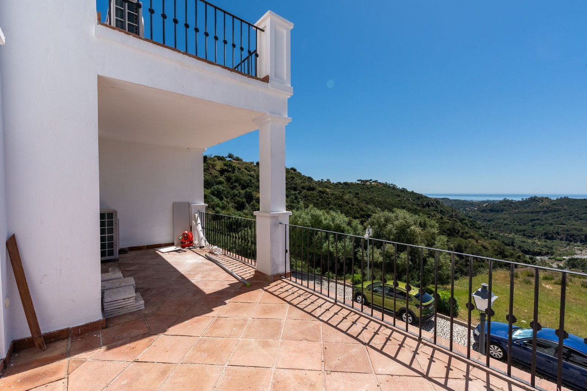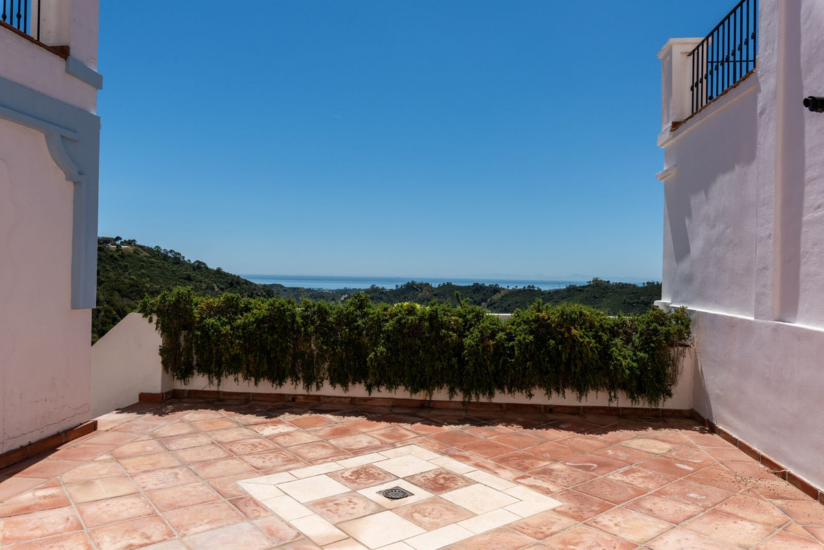 Située dans le lotissement sécurisé de Monte Mayor à Benahavís, cette maison jumelée en cours de rénovation offre un cadre de vie privilégié au cœur des collines, avec une orientation plein sud et une vue panoramique imprenable à 180° sur la mer. D'une surface habitable de 306 m², complétée par 77 m² de terrasses et un jardin privatif de 37 m², la propriété sera livrée entièrement rénovée en juin 2026 avec des finitions modernes et haut de gamme.