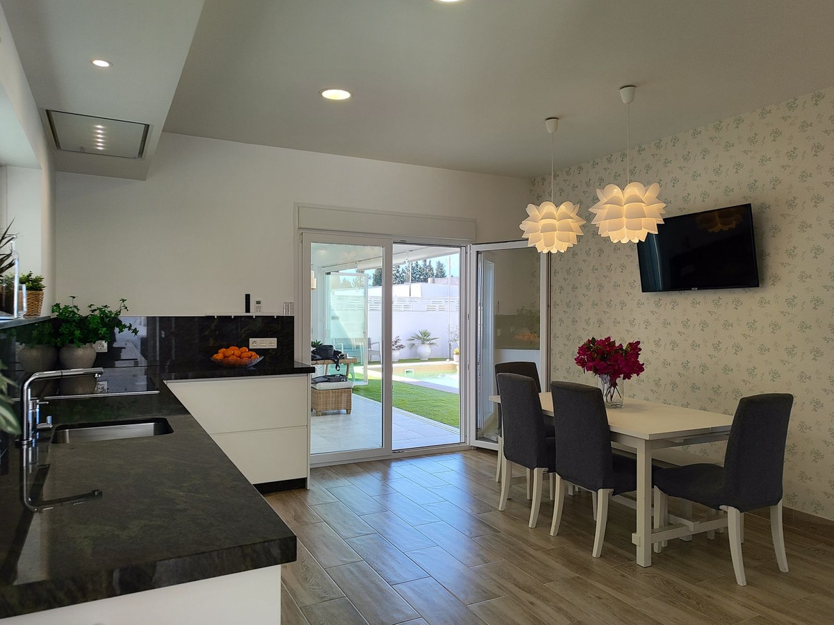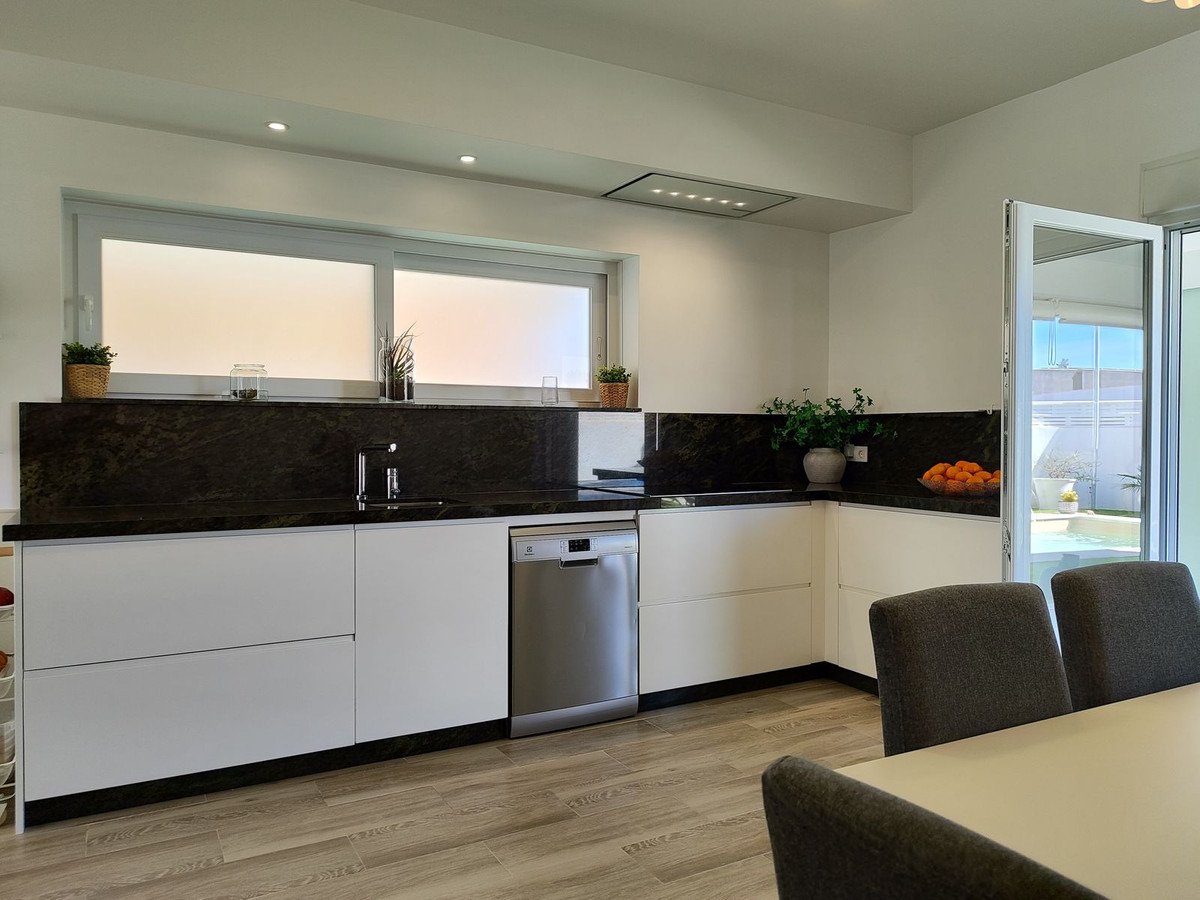 As an added value, the home includes an outdoor bathroom for pool use and guests, an outdoor shower, and a functional rear patio for maintenance and laundry. All of this in a barrier-free home, also ideal for people with reduced mobility.
