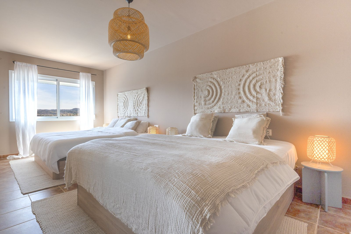 Deux grandes chambres, chacune équipée de deux lits doubles, ainsi que deux salles de bains. On trouve également à cet étage un salon confortable et une cuisine. Accès direct à une terrasse couverte et à une grande piscine privée avec transats et vue imprenable.
